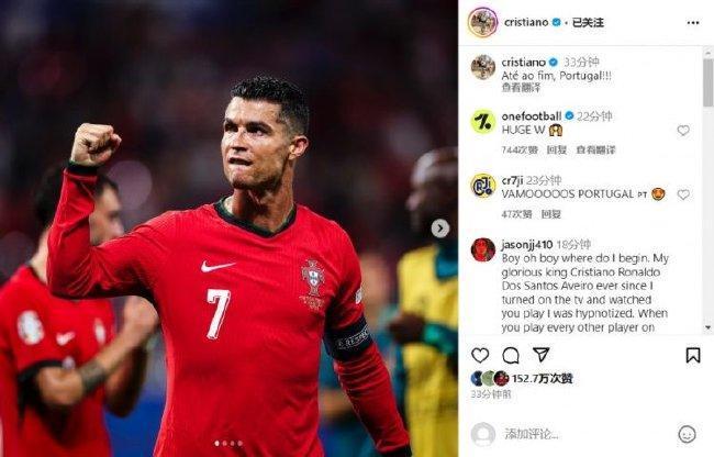 C罗近8场国外大赛莫得通顺战进球!赛后更新社媒庆祝见效!